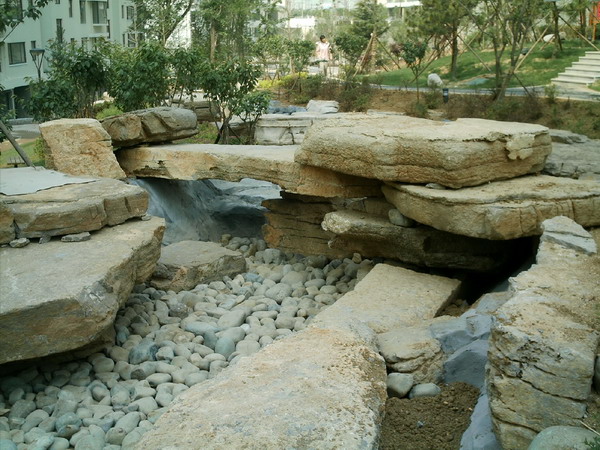 青岛交运山桩假山工程