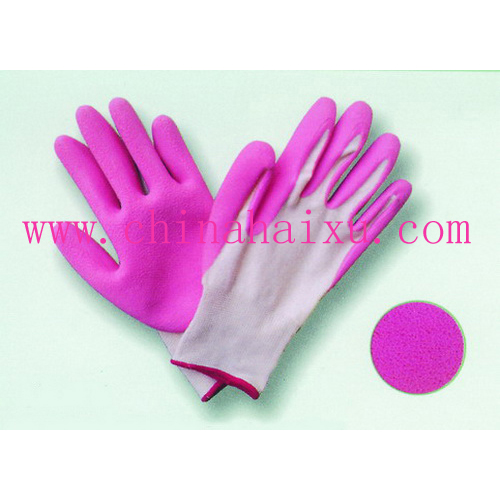 描述 13针白色尼龙半浸粉色天然乳胶,发泡处理