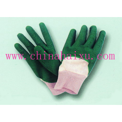 描述 白色绒布3/4浸绿色天然乳胶,细纹起皱处理