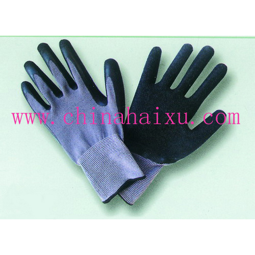 DESCRIPTION: 13-gauge gray Nylon knit shell ,Black natural latex palm and fingertip coated, crinkle finish