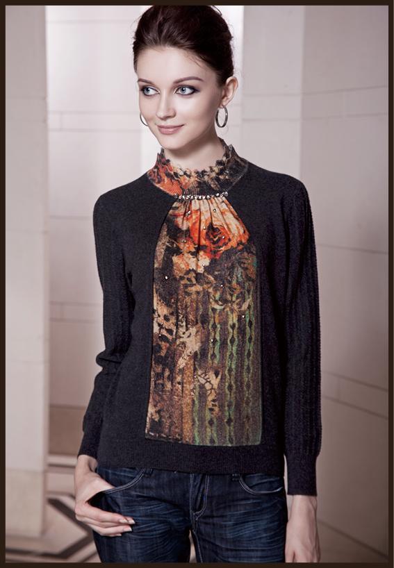 领口仿蕾丝织法,领口前片印花